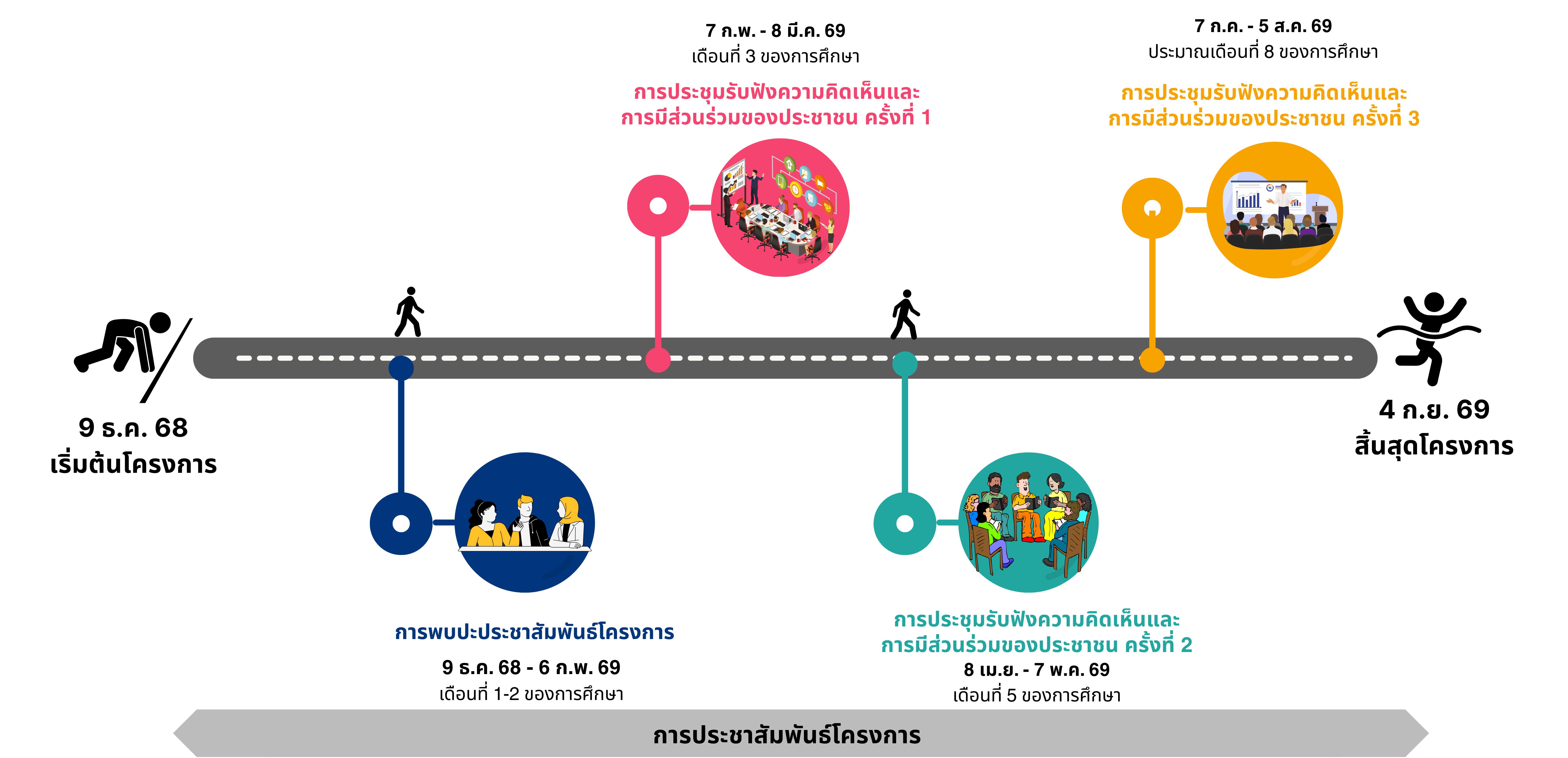 เพื่อนำเสนอข้อมูลรายละเอียดโครงการ ขอบเขตการดำเนินงาน แก่ผู้มีส่วนได้เสียและหน่วยงานที่เกี่ยวข้องได้รับทราบ รวมทั้งรับฟังความคิดเห็น ข้อมูลของชุมชน ประเด็นที่กังวล ข้อคิดเห็นเบื้องต้นต่อโครงการ
